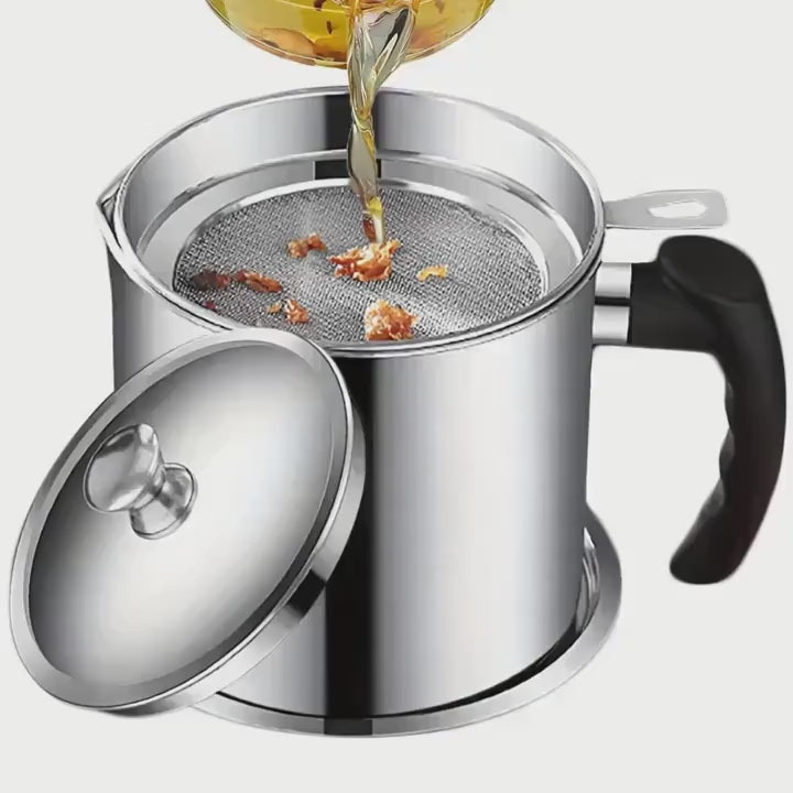 đź«™ Stainless Steel Oil Filter Pot with Strainer & Lid